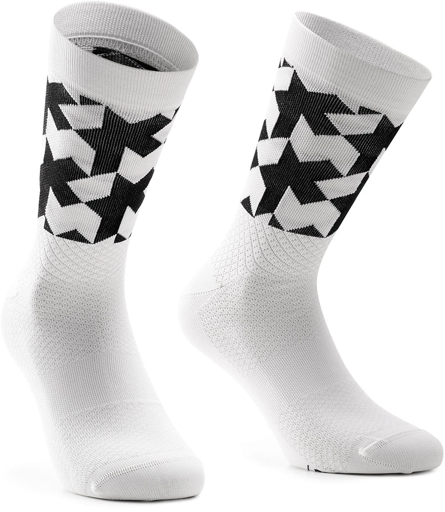 Styled to match the hottest days, the Monogram Socks are classic in their length and modernist in their patterning. A light summer stocking in the ASSOS collection. It is elastic, breathable and adapts to the foot optimally. Innovative, improved material composition.