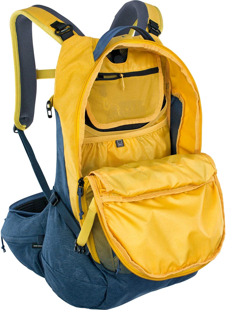 La caractéristique distinctive de la coupe « Body Hugging » d’EVOC est que le centre de gravité du sac à dos est positionné aussi près du corps que possible, et la charge est répartie sur une grande surface et transférée aux hanches. La liaison optimisée des bretelles et les larges ailes de hanches qui » sortent » de la partie dorsale garantissent que le sac à dos reste fermement en place pendant tout type d’activité – pour plus de confort et de contrôle.