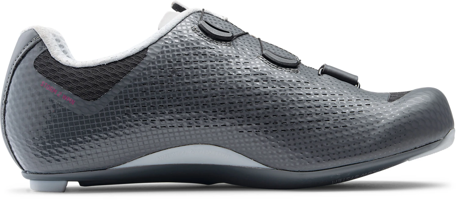 La Storm 2 WMN est dotée d’une semelle Morph 10 AAS avec un indice de rigidité de 12, d’un Adaprive Arch Support® en TPU et d’une empeigne avec une construction unibody sans couture pour réduire les points de pression. La fermeture rotative SLW3 avec velcro supplémentaire permet d’ouvrir la chaussure avec un seul bouton. Le laçage asymétrique répartit la pression du dos du pied et la dirige parfaitement tout autour du pied.