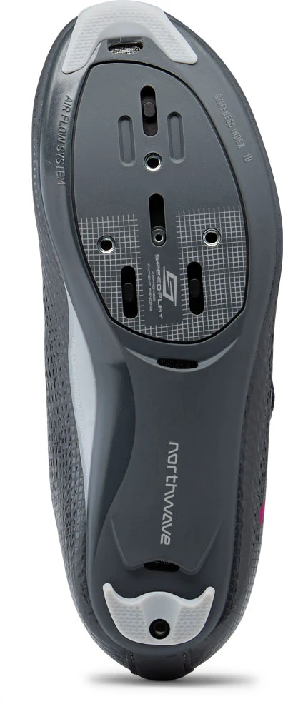 Jamais auparavant la distance entre le pied et la pédale n’avait été aussi petite. Northwave, en collaboration avec Speedplay, a développé et breveté un adaptateur exclusif qui garantit une transmission maximale de la puissance aux pédales avec son épaisseur de seulement 0,5 mm par rapport aux 3 mm d’épaisseur des adaptateurs traditionnels de Speedplay. Fabriqué en nylon avec une fine plaque d’aluminium (8,5 g de moins), l’adaptateur s’adapte à la forme de la semelle. Cela signifie que la distance entre le pied et la pédale est constamment minimale dans n’importe quelle position, sans prendre d’espace et de poids supplémentaires, comme dans les systèmes sans adaptateur.