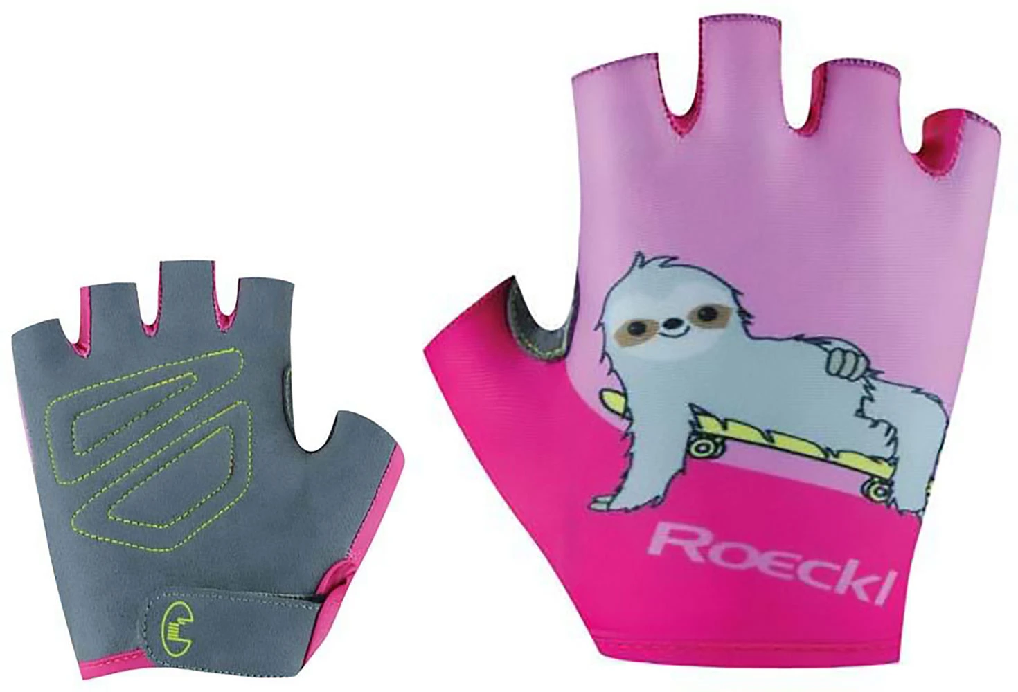 The first thing that catches the eye of the children’s bike glove TRIENT is its cute sloth motif on the back of the hand – bike-loving kids will love this look! But this little short-fingered model has more to it than just looking good. On the backhand, stretchy poly Lycra material optimally supports every movement of the fingers and hands while cycling, the palm is made of color-contrasting DURADERO synthetic suede.